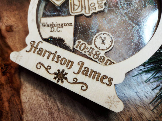 Baby's First Christmas Snow Globe - Personalized Birth Stats